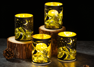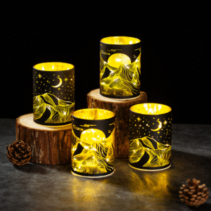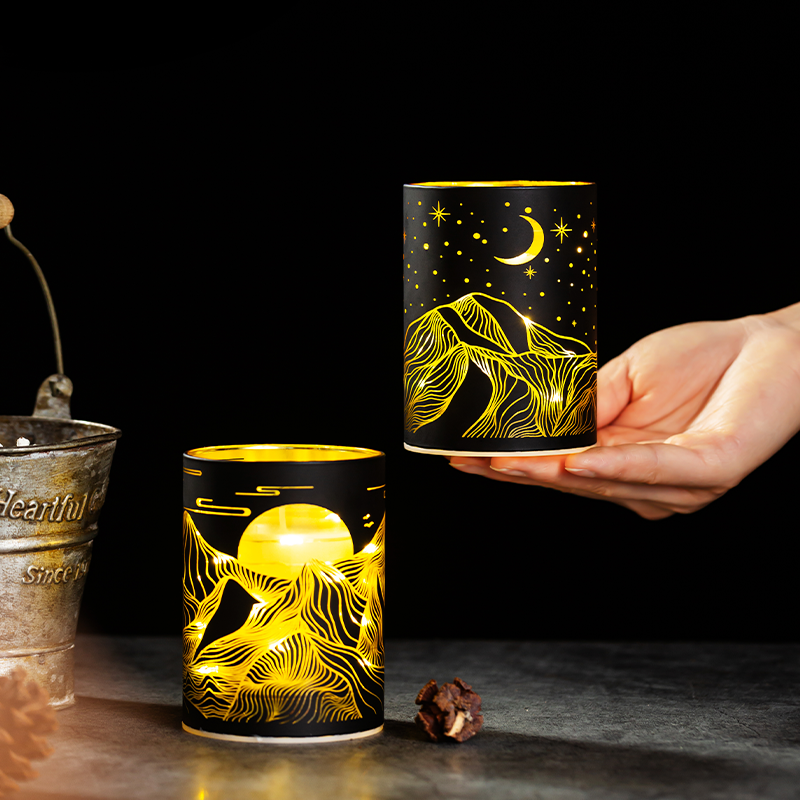 2.Artistic Design: Features “Sunrise Over Hills” and “Moonlight Over Mountains” patterns that cast stunning shadows when the LED is lit, blending aesthetics with functionality.