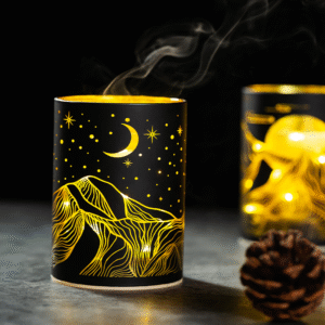 Where aroma meets ambiance, our 2-in-1 Aromatic Candle & LED Atmosphere Light redefines versatile luxury. Adorned with poetic motifs of “Sunrise Over Hills” and “Moonlight Over Mountains,” this piece blends the warmth of natural fragrance with the magic of soft illumination.