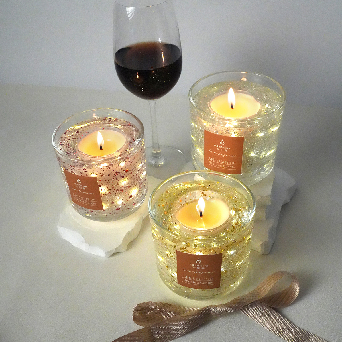The moment you light the candle, the delicate LED circle inside automatically illuminates—creating a dazzling, soft glow that enhances the beauty of the floating charms and makes every burn feel truly magical.