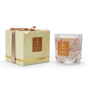 Inner core: 100% natural soy wax for a clean, even burn. Outer layer: crystal-clear jelly wax that preserves the beautiful decorative elements intact.