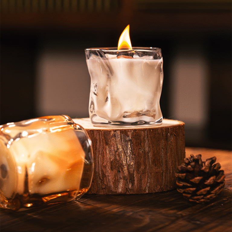 Clear glass jars showcase the candle’s creamy wax and dancing flame, doubling as decor once burned. Seamless, elegant, and reusable—perfect for dining tables or mantles, with scents that fill rooms gently.